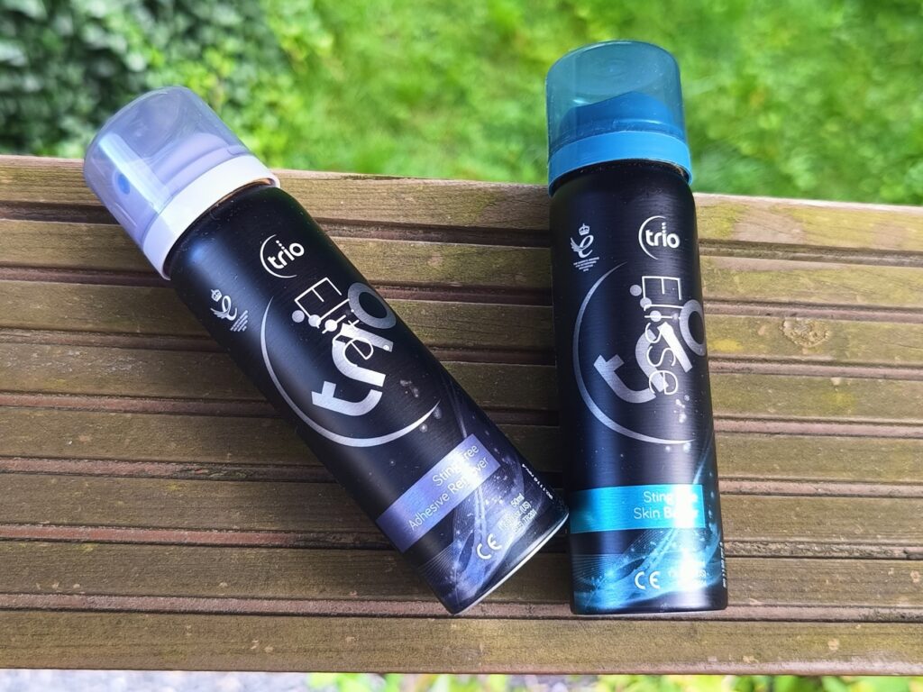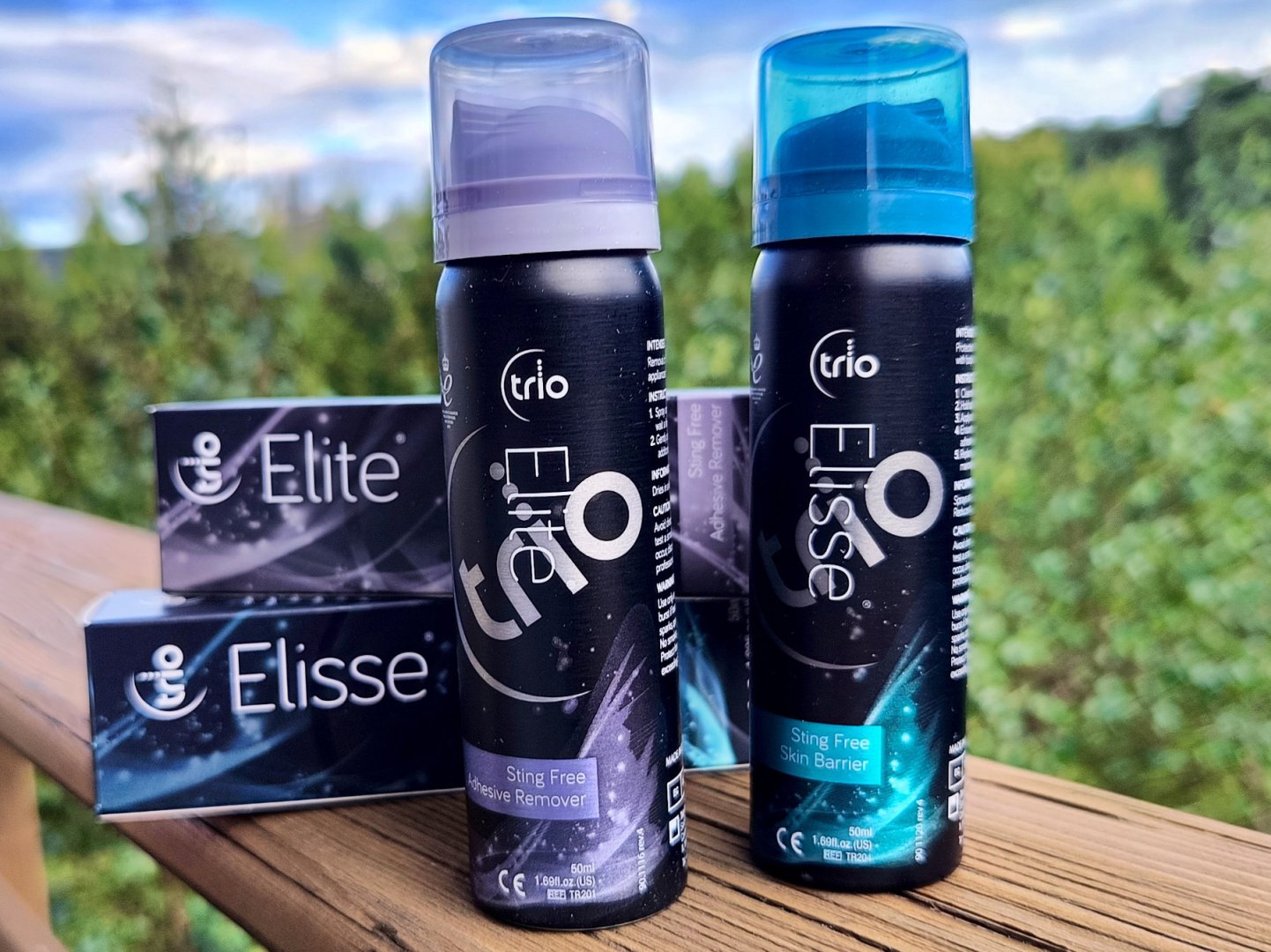 Trio dwa spraye do zadań specjalnych. Jeden wspiera bezbolesne odklejanie starego sprzętu, drugi natryskuje ochronny film na skórę, która większą część czasu znajduje się pod stomijną płytką.