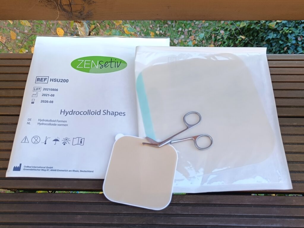 Jak pisaliśmy już wcześniej, hydrokoloid to nowoczesny, swoisty opatrunek na rany i podrażnienia. Tworzy wilgotne środowisko działania i przy równoczesnym pochłanianiu wysięku. Dlatego właśnie można go stosować nie tylko jako przedłużenie i wzmocnienie przylepca, ale też jako środek naprawczy stosowany wprost na podrażnioną skórę, w celu wspomagania jej regeneracji.