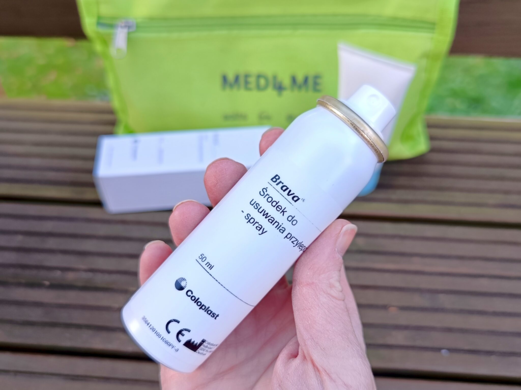 Stoma-protip: odklejaj płytkę powoli, zaczynając od góry. Wystarczy delikatnie podważyć brzeg i aplikować remover punktowo dokładnie tam, gdzie klej jeszcze trzyma. Preparat sam „wejdzie” pod przylepiec i zacznie go rozpuszczać.