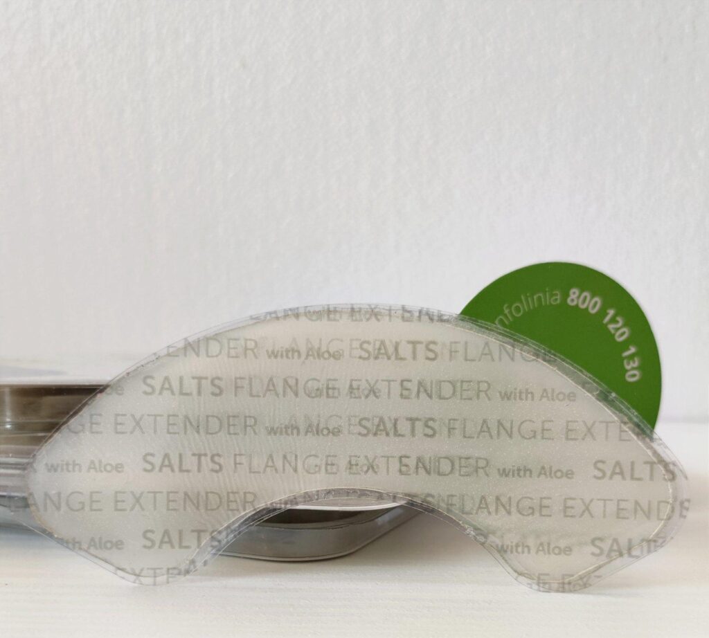 na zdjęciu woreczek marki Salts – typu convex – z wypukłą płytką. Idealny do stomii wklęsłych lub mło wystajacych ponad skórę