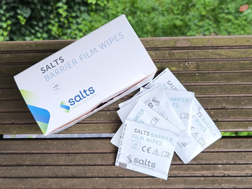 Tworzy na skórze cienką, niewidoczną warstwę ochronną. Chroni przed podrażnieniami i otarciami, poprawiając komfort noszenia sprzętu. Regularne stosowanie bariery to dobra profilaktyka problemów skórnych. Zamiennie wielu stomików używa chusteczek nasączonych preparatem ochronnym.