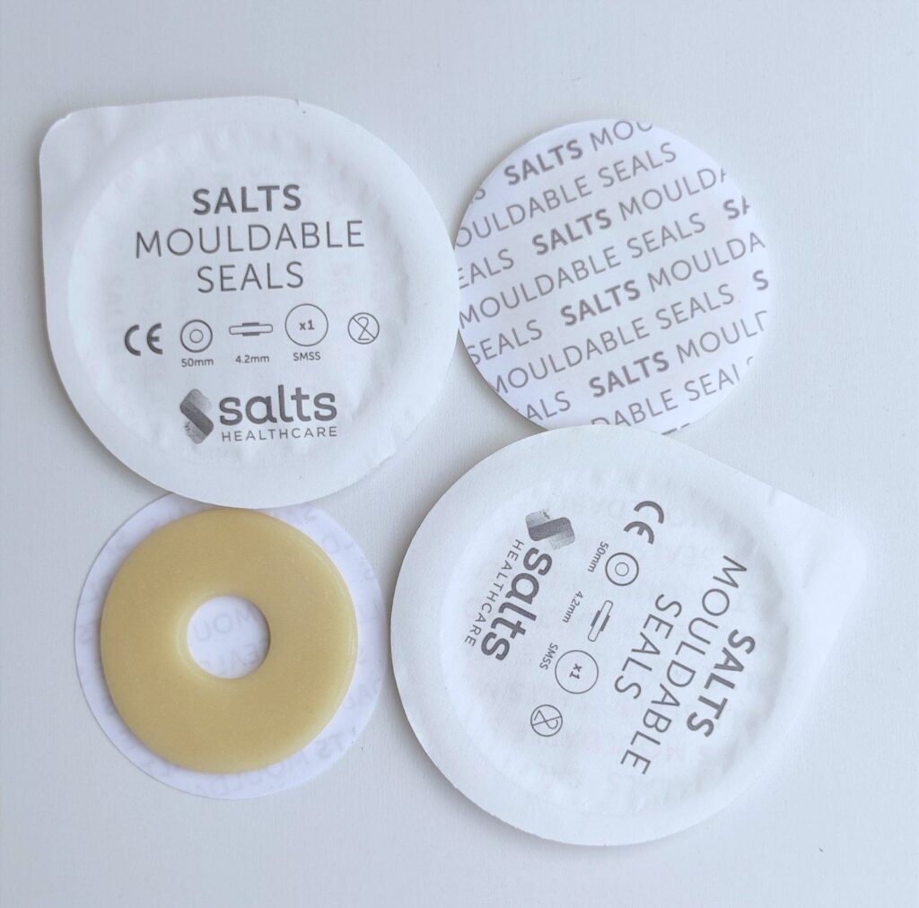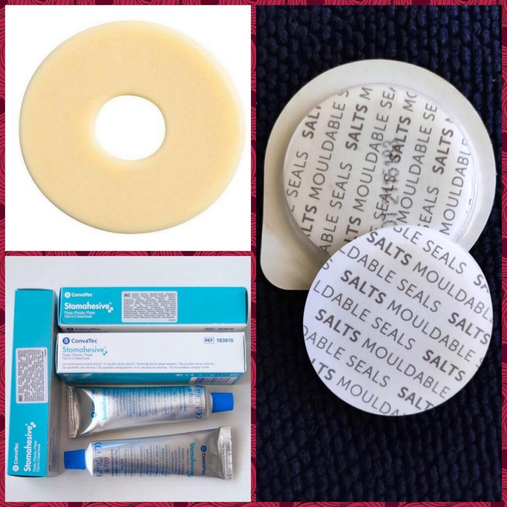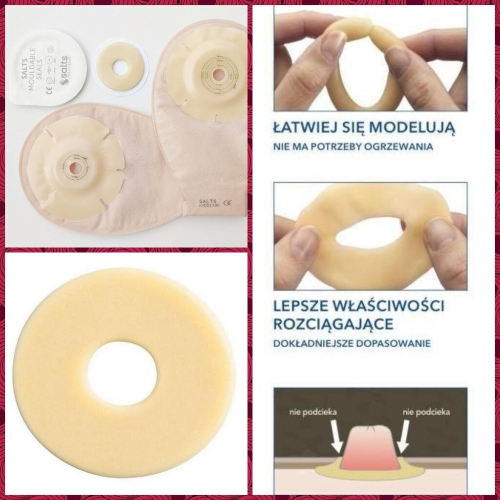 Na zdjęciach pasta uszczelniająca marki Convatec oraz hydrokoloidowe pierścienie uszczelniające Secura Plast, marki Salts.