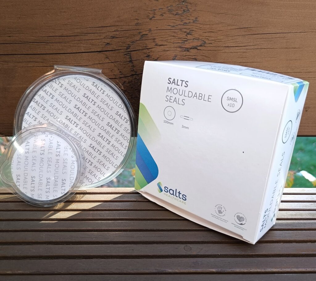 Salts Mouldable Seals to plastyczne, wygodne w użyciu formowalne pierścienie uszczelniające, które pomagają zapobiegać efektom podciekania treści pokarmowej pod płytkę stomijną. Efekty te to bolesne podrażnienia skóry wokół stomii.