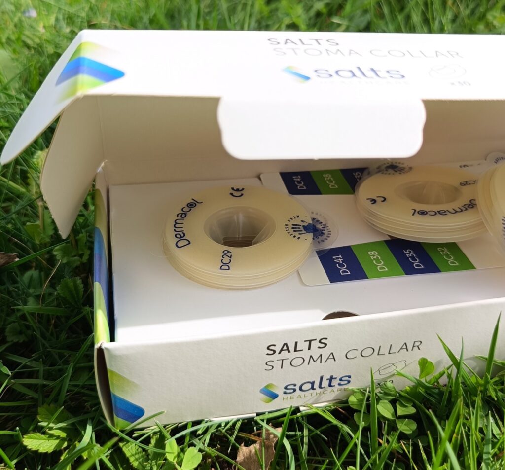 Reasumując, kołnierz Salts stoma collar zabezpiecza stomika w dwójnasób. Przede wszystkim chroni skórę wokół stomii przed kontaktem ze żrącą treścią jelitową, która powoduje jej uszkodzenia. I po drugie formuje i trzyma stomię w kołnierzu, kierując treść do woreczka.