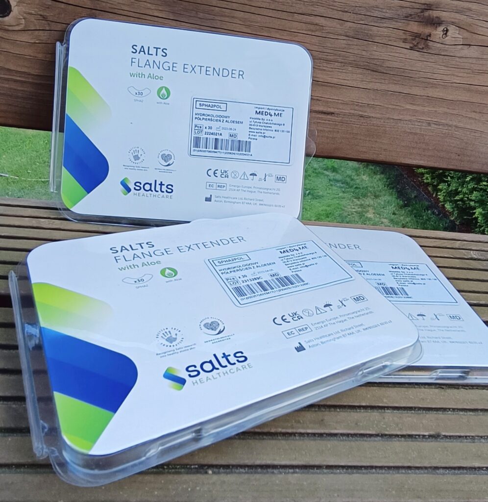 oraz o hydrokoloidowych półksiężycach marki Salts z ekstraktem z aloesu. Można nimi zaopatrywać zarówno podrażnienia, jak i nieco poważniejsze uszkodzenia skóry znajdującej się pod stomijną płytką.