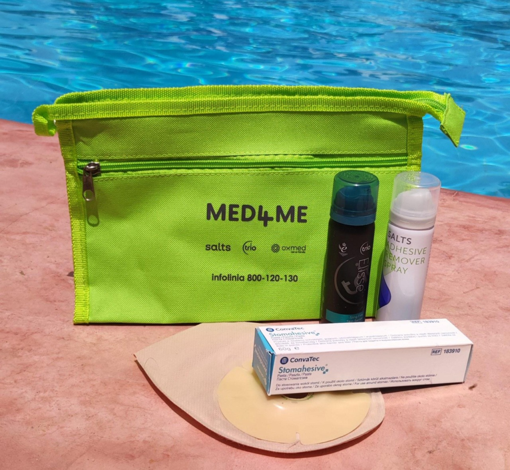 Zasada jest taka, że na podróż bez względu na jej długość, do kosmetyczki stomika zawsze pakujemy to, co używamy, zmieniając woreczek w domu.