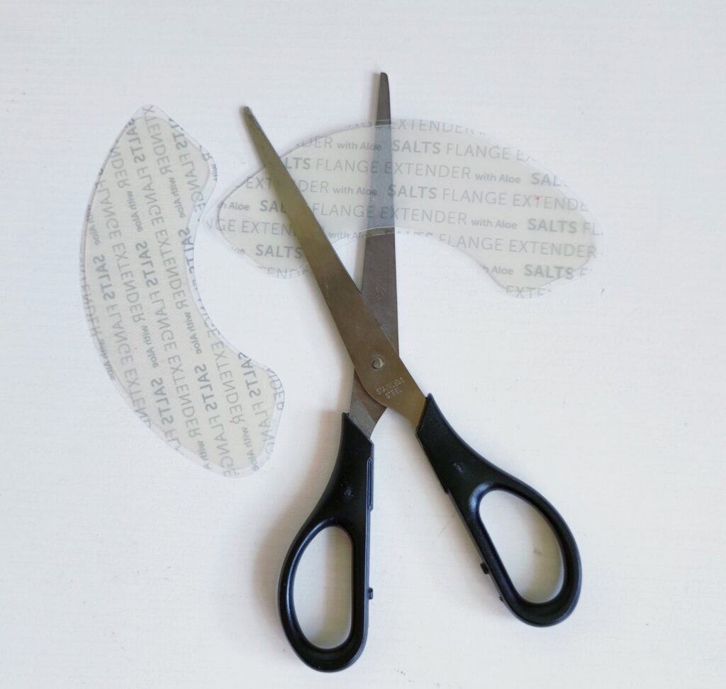 Naklej plasterki gojące z aloesem. Dotnij je zwykłymi nożyczkami. Cięcia będą proste i takie, jak wymierzyłaś. Jeśli użyjesz nożyczek do stomiii, licz się z tym, że plasterek nie będzie idealnie ucięty, bo te nożyczki nie tną prosto lecz skręcają.