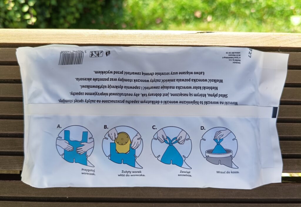 – zadbać o higienę woreczek można zamknąć szczelnie i wyrzucić później, nie trzeba szukać kosza na już,