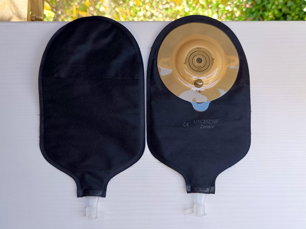 Ten model to jednoczęściowy worek urostomijny w rozmiarze M, z czarną, dyskretną osłoną oraz przezroczystym okienkiem. Okienko umożliwia kontrolę skóry wokół stomii oraz poziomu napełnienia worka bez jego odklejania.