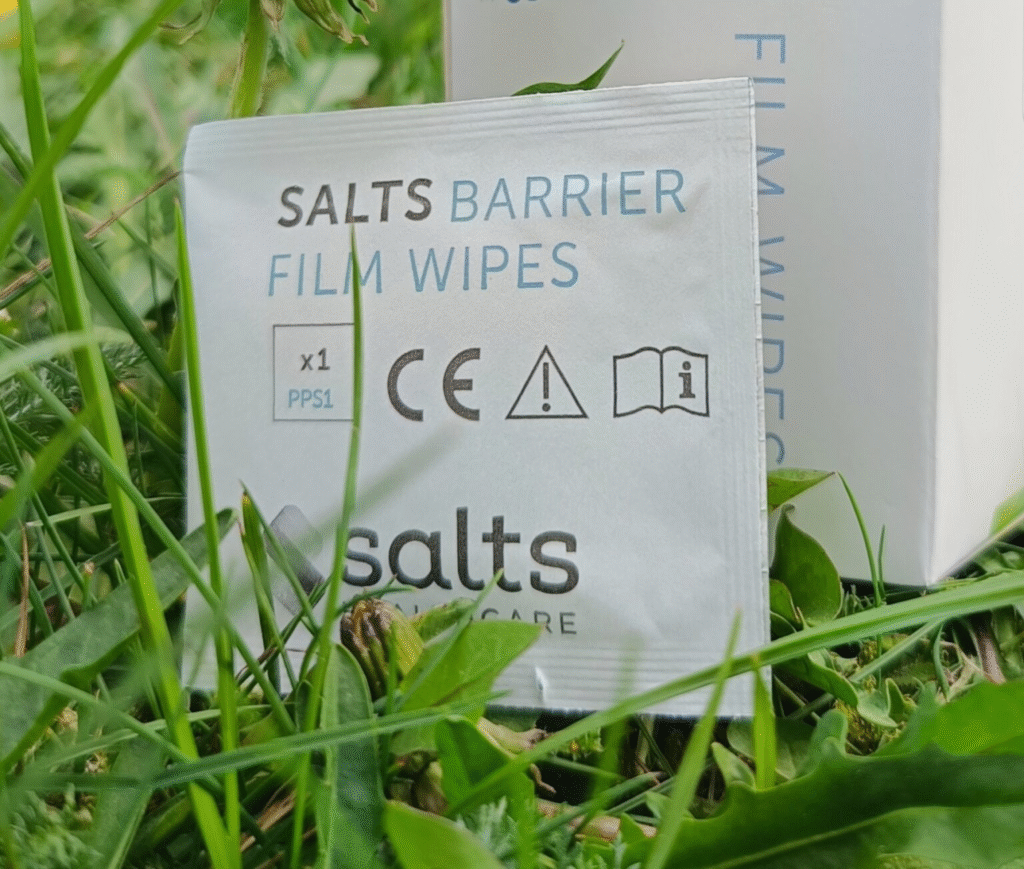 W kosmetyczne na wyjścia warto mieć chusteczki do oczyszczenia skóry te dedykowane stomikom, i te zwykłe do osuszenia jej przed założeniem nowego sprzętu.